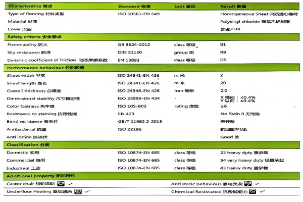 同质透心地板卷材宽度2m/长度20m规格:减少接缝滋生细菌,热焊无缝拼接技术:满足医院无菌室标准,自流平基层兼容性:适用于新旧水泥基面。 更有加强PUR与防静产品,加强pur更加耐磨,适用于舞蹈室、商场、健身房、仓库、工业车间等高流量、高磨损区域。 防静电地板,适用于数据中心、实验室、电子厂、通信基站等静电敏感场所。 安全防火,防滑,无甲醛,耐酸碱防碘伏,耐磨耐压 耐磨等级T级、通过抗酸碱、抗菌防霉、防碘伏检测。
