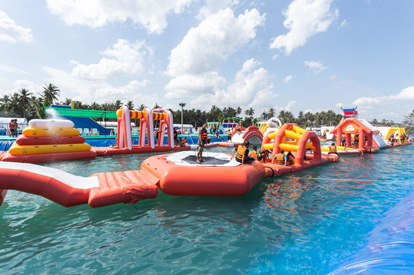 1. 材料与设计特性 PVC充气城堡以高强度聚氯乙烯(PVC)夹网布为主要材料,结合热镀锌钢架或锚固装置,具备以下特点: 耐用性:采用加厚PVC防水布,抗拉度强,抗撕裂性能优异。 安全性:四折缝线工艺和加固接缝设计,减少漏气风险; 便携性:可折叠设计,配备鼓风机和维修套件,适合临时活动。 定制化:支持个性化图案、颜色和品牌LOGO印刷,满足商业推广需求。 2.场景适配: 户外活动需选择抗紫外线涂层产品; 商场或室内场所可优先考虑轻量化设计。