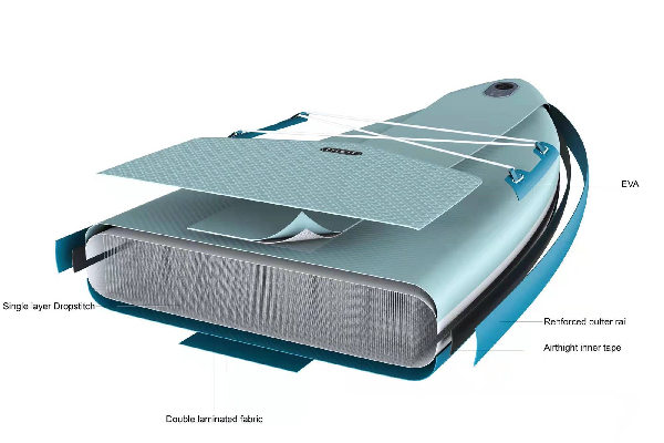 PVC冲浪板主要分为充气式和硬质结构两类,核心材料为PVC,具有以下特性: 轻便耐用:充气式PVC冲浪板重量通常在8-15kg,便于携带和存储,且采用高压缝合工艺和EVA材料强化,耐海水腐蚀和抗冲击性能强。 多功能设计:支持定制化图案、颜色及品牌标识,满足个性化需求。
