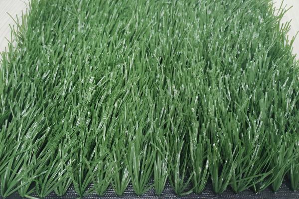 特点:足球场用的填充型运动草特征是高而稀,草高一般在40mm到50mm,密度多在10500簇到11000簇之间。刚铺装时草丝呈趴着的状态,不太美观。运动特性跟天然草坪接近,能提供较好的球滚动和反弹性能,可满足各类运动需求。在长期干燥天气下,洒一点水可减少运动员被擦伤的危险,适合铺设在户外,保质期通常为5 - 8年。